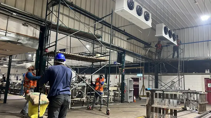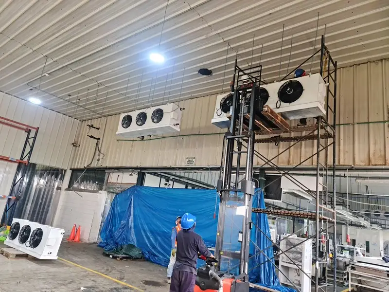 • Montaje e instalación de las unidades de frío industrial, incluyendo compresores, evaporadores, condensadores y sistemas de control.